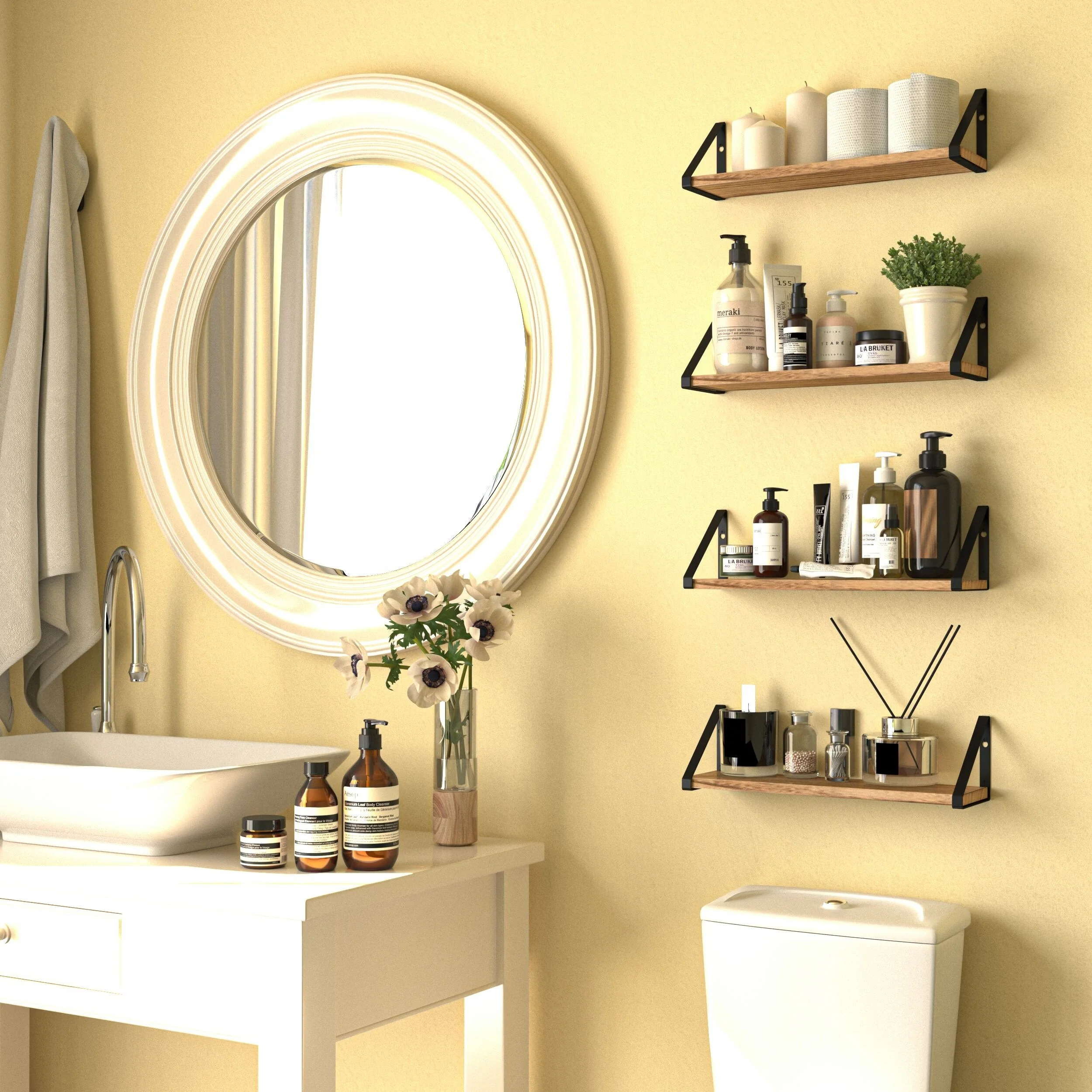 - Multi-purpose hanging shelves for wall display in any room