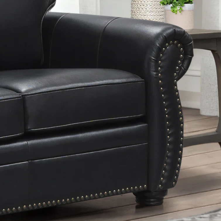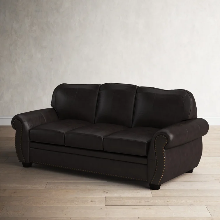 Emphasizing comfort and style, this Sofa creates a coziness beyond compare, while the brass-toned nailhead trim and top grain leather upholstery add a touch of luxury to this comfortable sofa. No matter your decor, this Sofa will enhance it effortlessly.