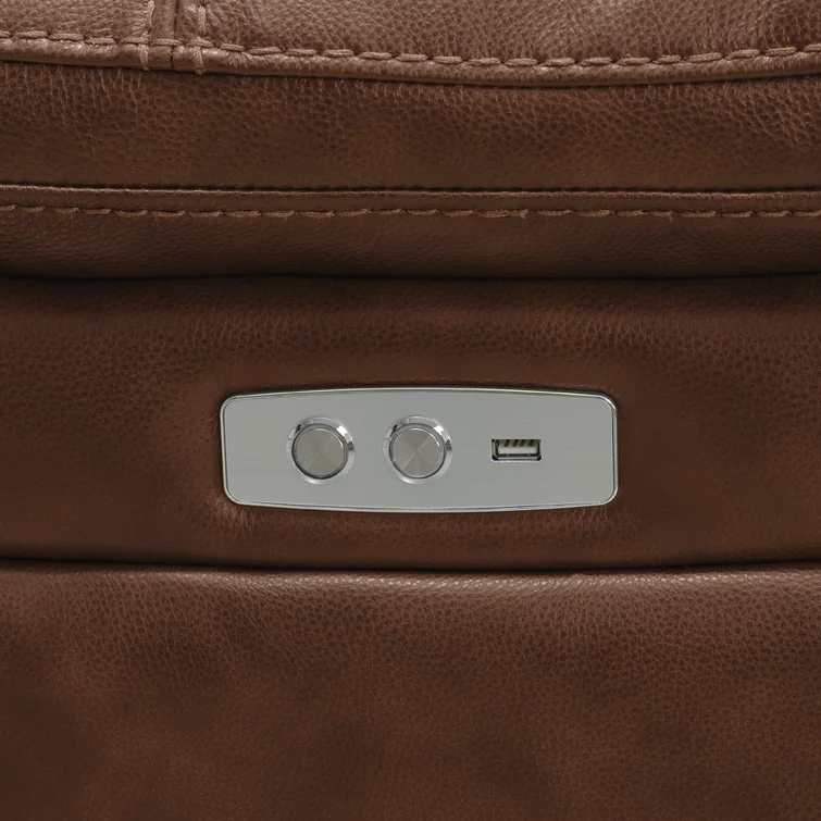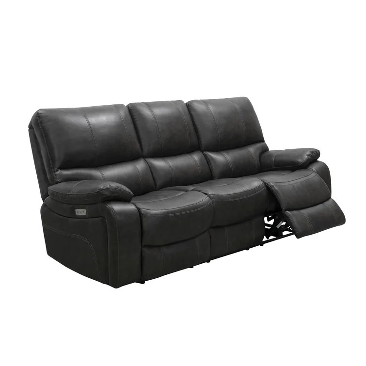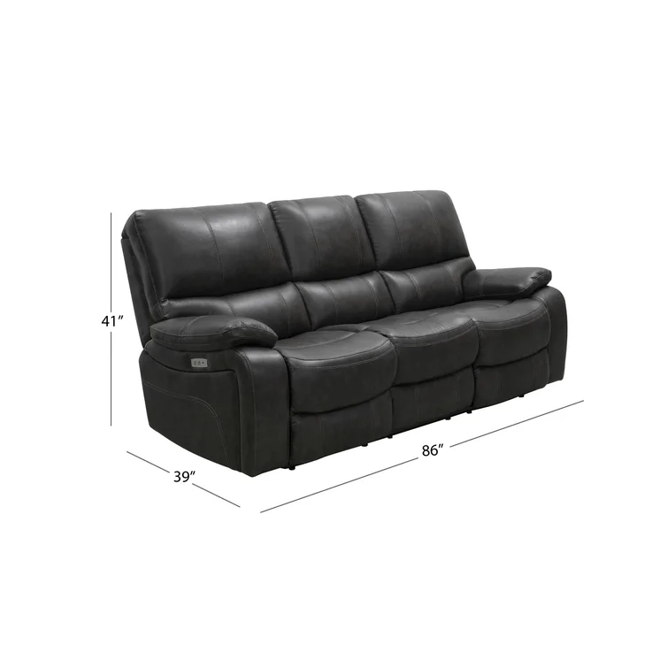 This reclining sofa has cozy pillow top arms that are ideal for extended lounging. It's built with a solid wood pine frame and is upholstered in neutral-hued top grain leather upholstery. The cushions are filled with generous foam padding, while sinuous springs add extra support throughout the seats. Plus, the seats boast a power reclining feature recline for maximum relaxation.Features