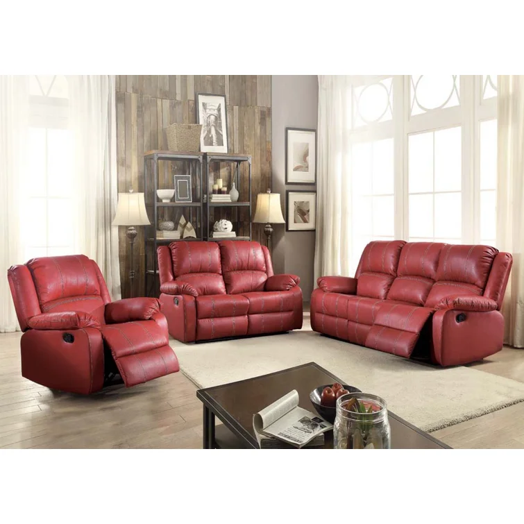 Combining luxurious faux leather with the comfort of padded, reclining seating, this collection is a wonderful choice for any family room. Red PU is supple, soft to the touch and durable while the sofa’s chaise footrests offer full leg support. Comfortable contoured seats.