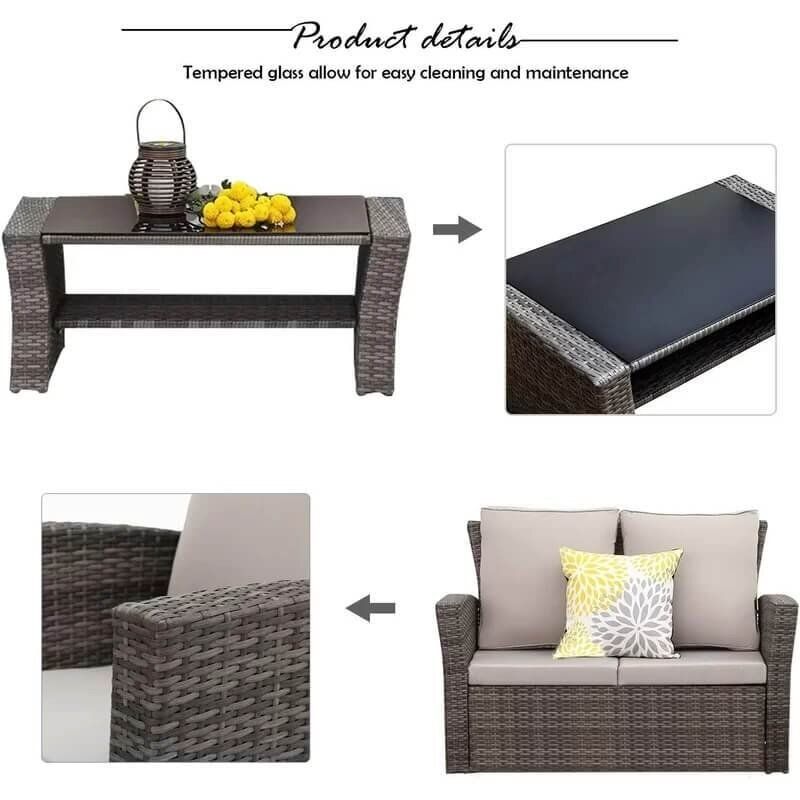 - Easy cleaning: Table with removable tempered glass adds a sophisticated touch and allows drinks, meals, or decoration on top. Water-resistant cushions with removable covers make cleaning and maintenance easier.