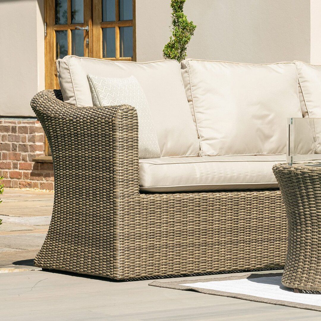 Cushions: Cushion covers are showerproof but not all-weather proof. Please store in a cool. dry area when not in use. Cushion covers can be cleaned with a damp cloth and warm soapy water. Do not use fabric softener/conditioner as this may impact the showerproof properties. Do not machine wash or tumble-dry cushion covers. We recommend purchasing the cleaning kit for rattan and cushions with this product.
