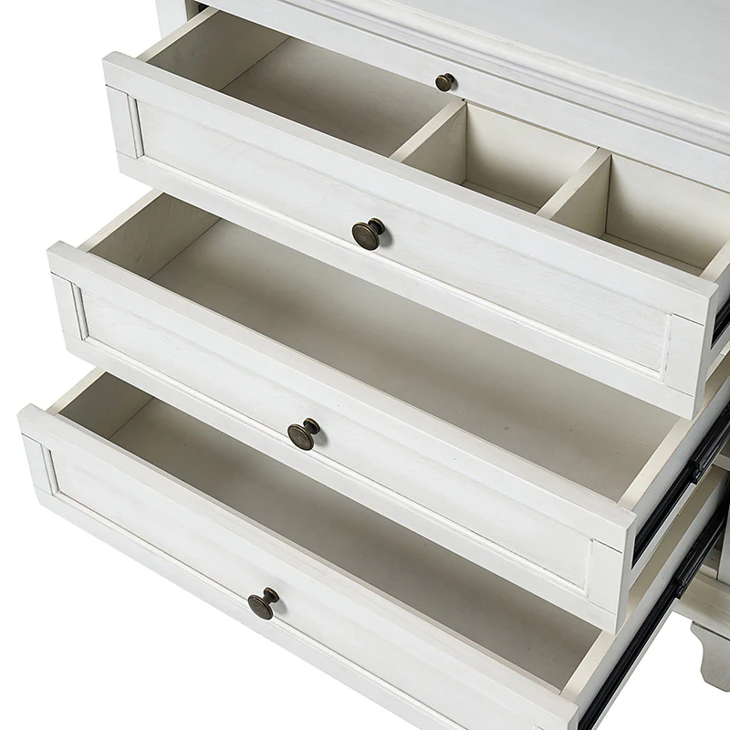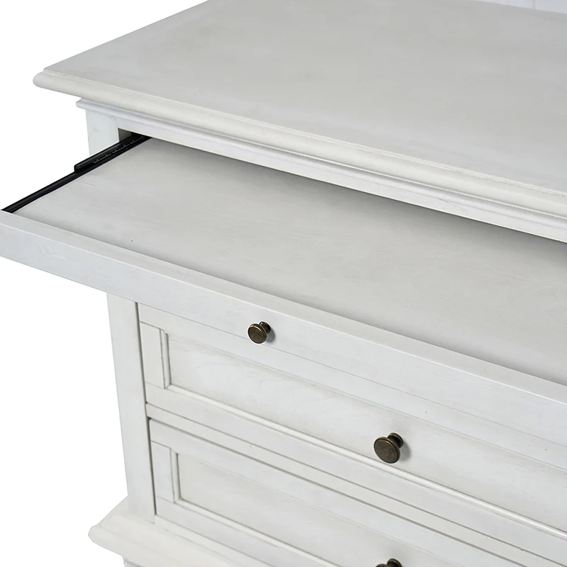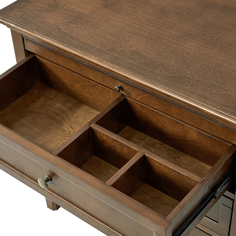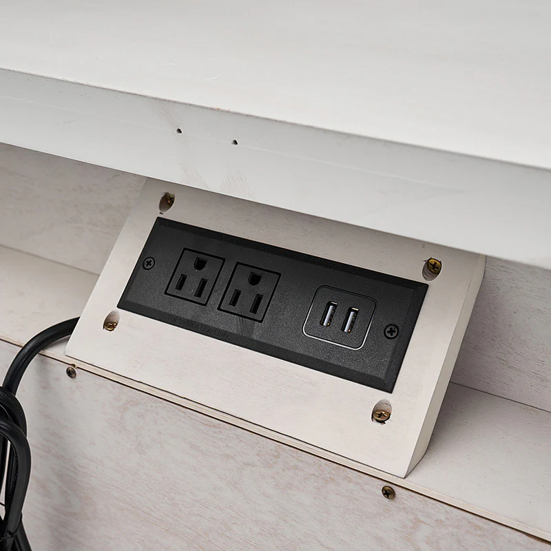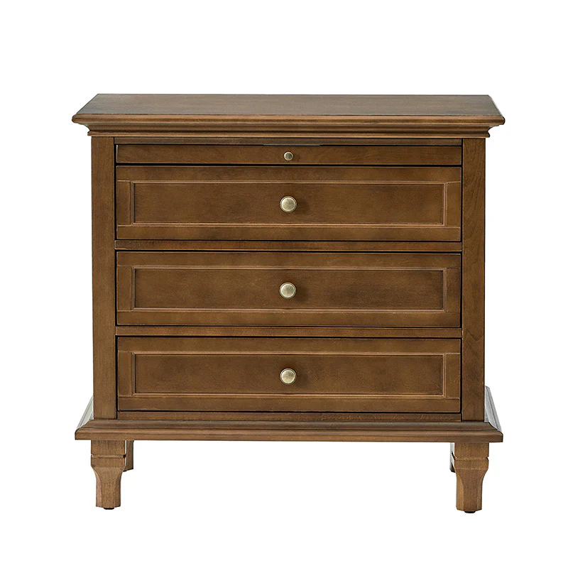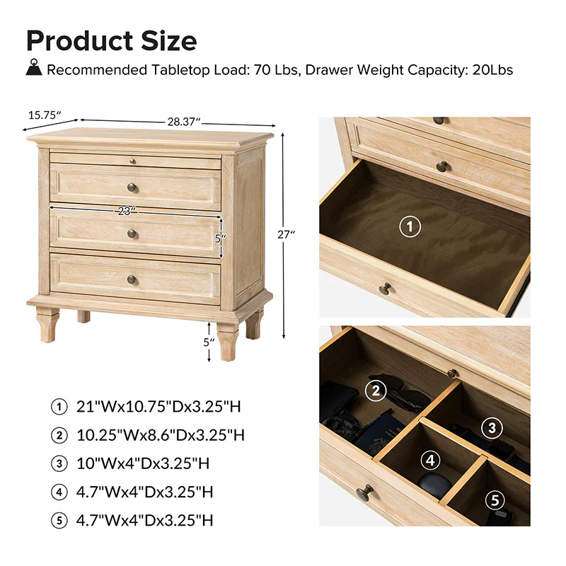 Immerse your space in rustic charm with the farmhouse and traditional nightstand. Crafted to harmonize seamlessly with classic interiors, this piece boasts an integrated charging station discreetly nestled within its design. The thoughtfully included pull-out shelf offers an extra surface area for nightly essentials or a cozy reading corner. The nightstand is supported by sturdy wood legs, evoking a timeless farmhouse aesthetic. With three drawers, you'll find ample storage to keep your haven organized. Enhancing functionality, a dedicated drawer organizer ensures tidiness for smaller items. Elevate your bedroom with this exquisite fusion of tradition and practicality, embodying both style and convenience.