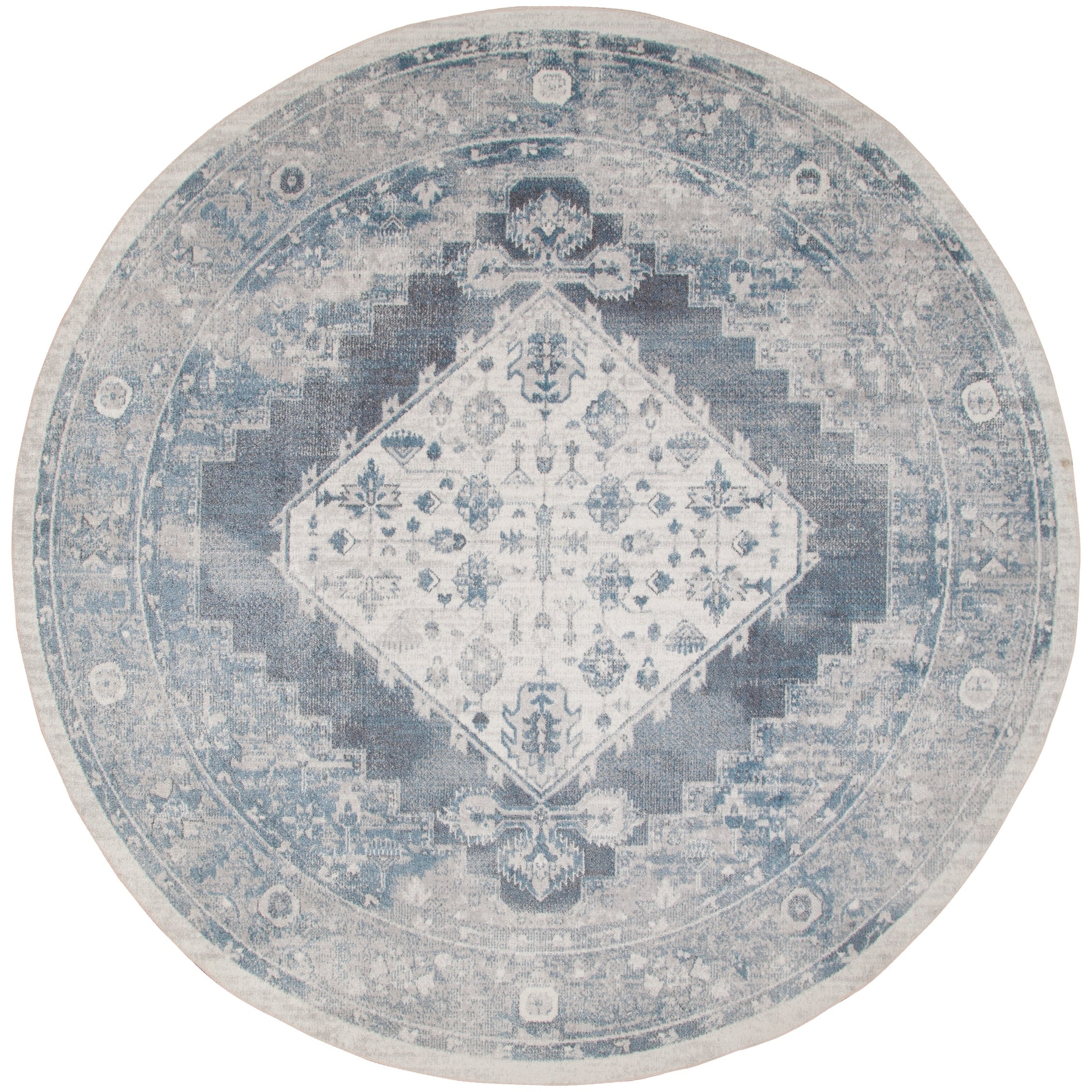 Vintage meets modern with this Persian rug from the Astra Machine Washable Collection Featuring an artfully faded floral medallion pattern in blue, the classic design is enhanced with a brilliant sheen that shifts in tone under different lighting This vintage-inspired rug is machine-washable for fuss-free cleaning, making it an ideal addition to busy households with pets and kids.